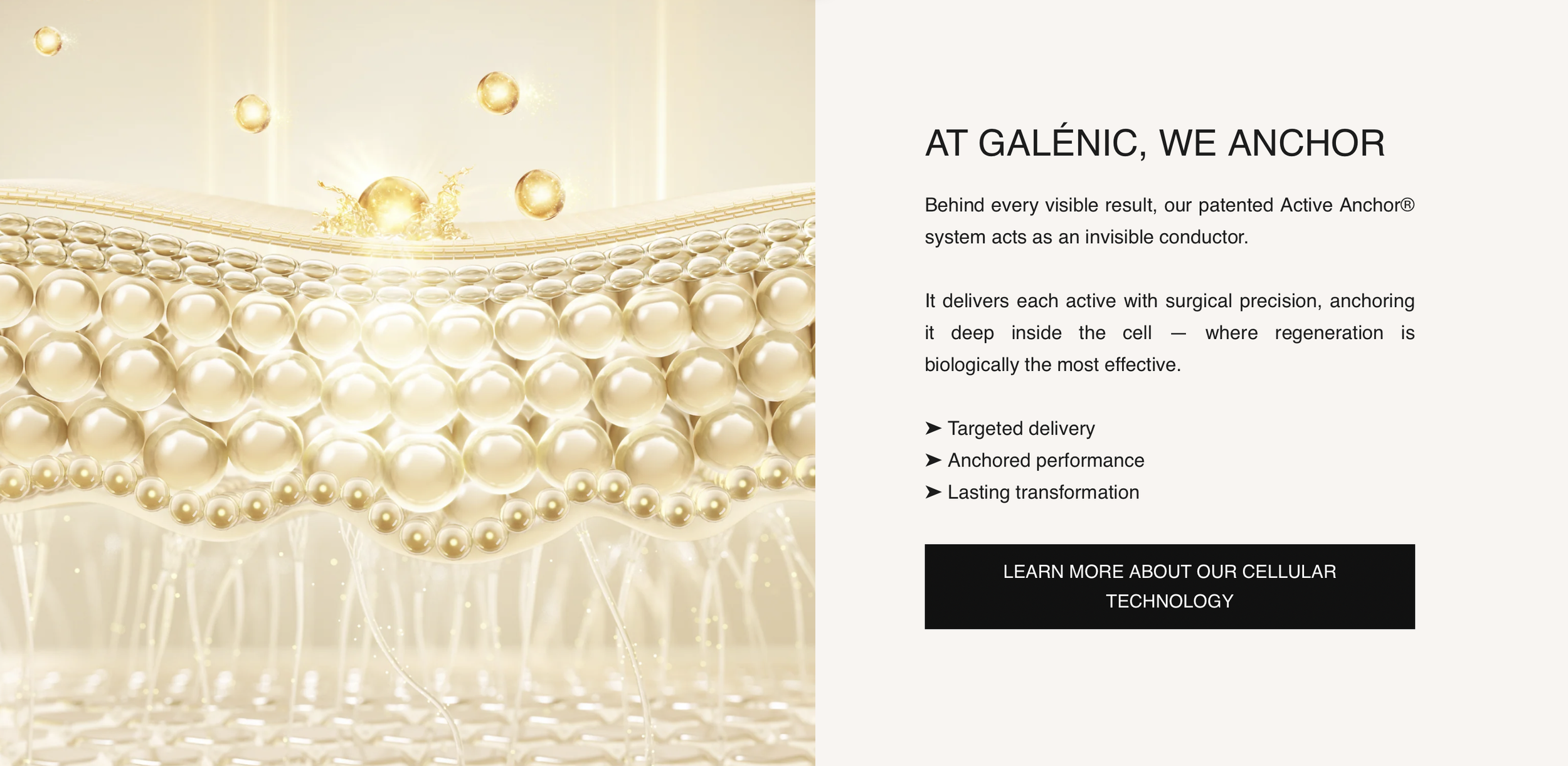 On the spectrum of luxury skincare storytelling—high vibes to high science—Galénic is grounded in complex cellular science lit with quietly potent luxury.