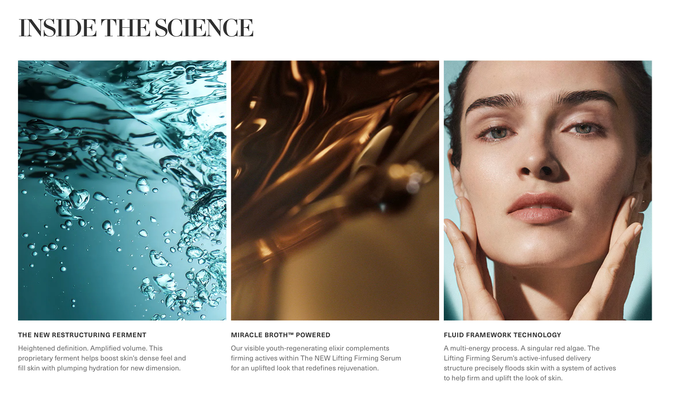 We wrapped heroic claims in inimitable romance, embracing age-centered optimism with a new point of view on benefits. And we crafted a scientific mosaic threaded with rare ingredients, skin-renewing ferments, and multiform technologies.